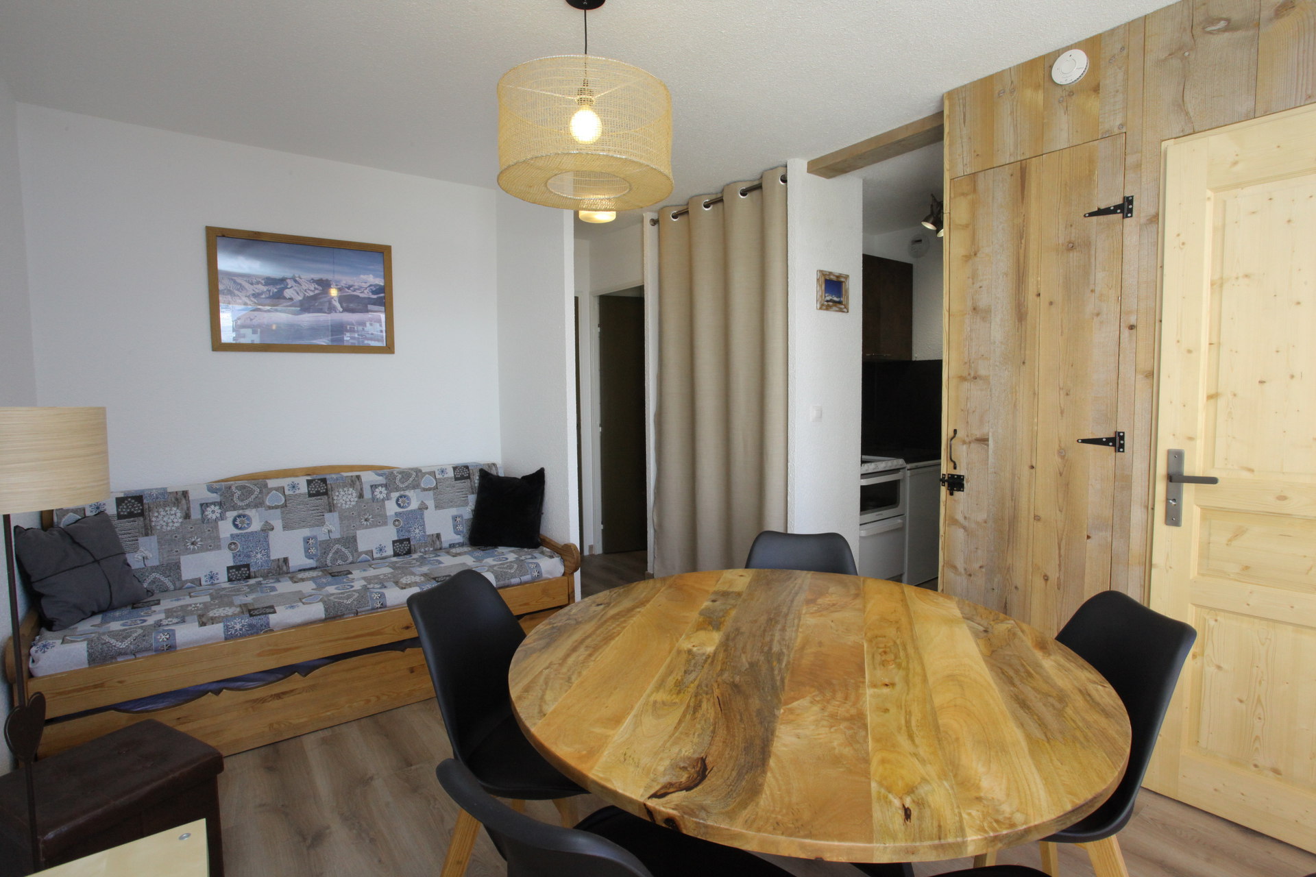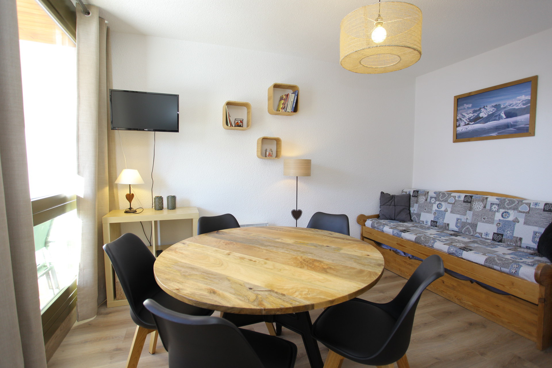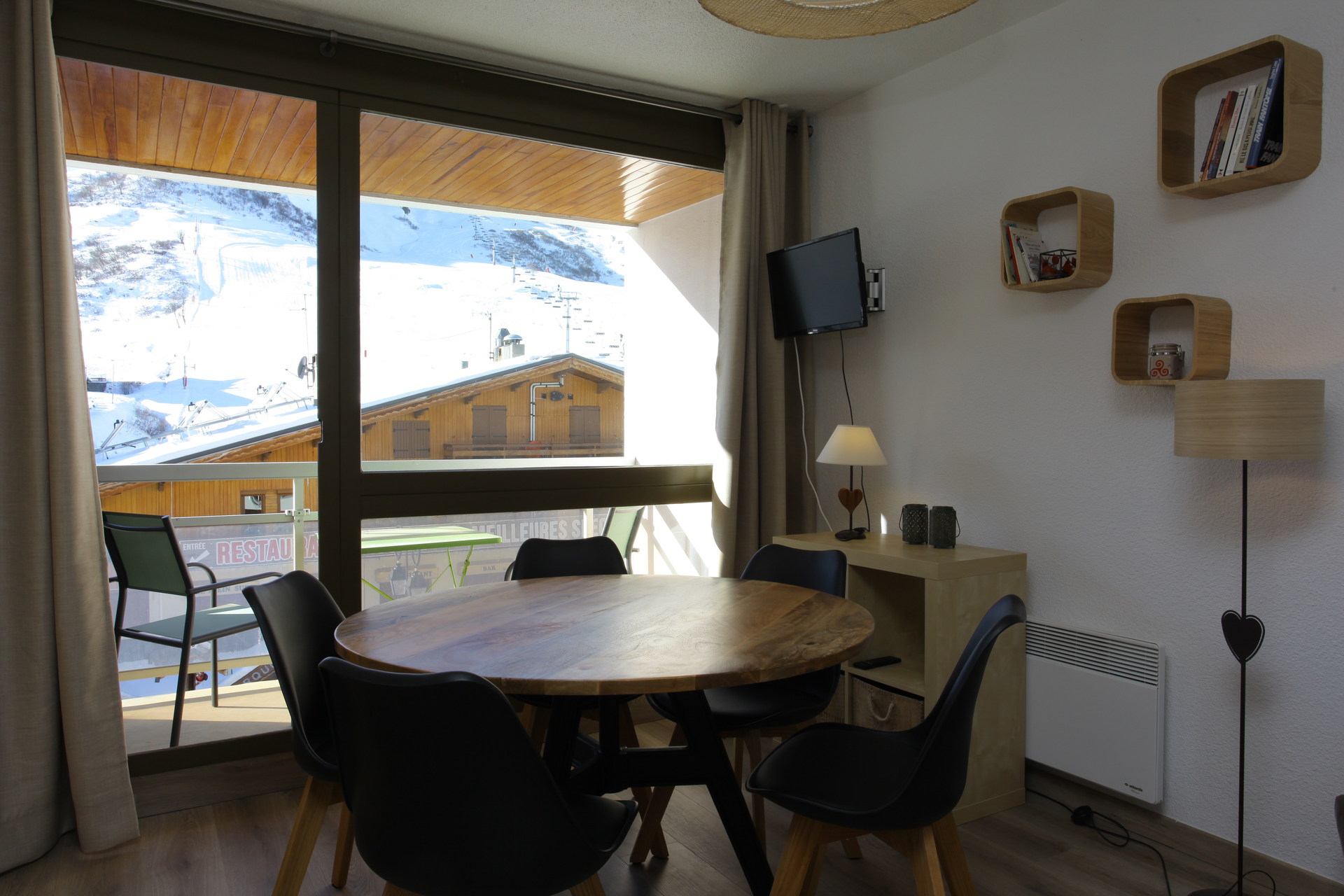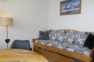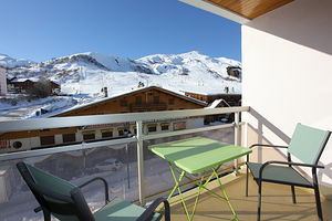 A pleasant and renovated 5 sleeping apartment, well organised, on 2nd floor (lift), with a balcony overlooking the slopes. Located in the Résidence Ravières II, in the station center, on top of the shops of the main street, facing the ski slopes departure (n°114 on the map station).