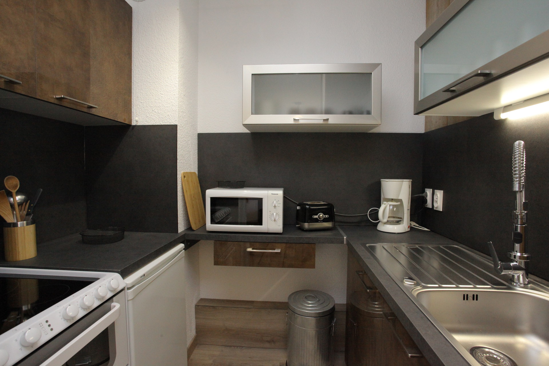 - a kitchen equipped with 2 hotplates, microwave, coffee machine...