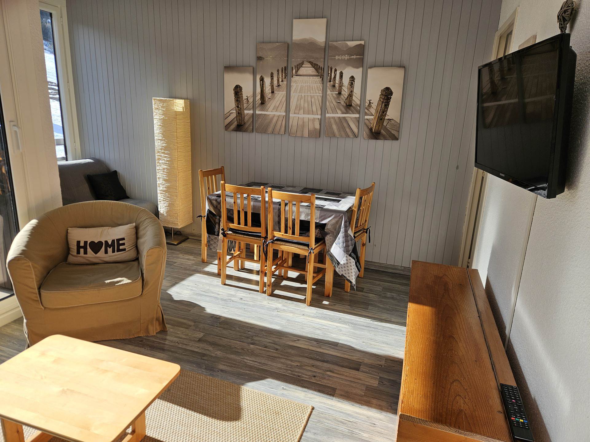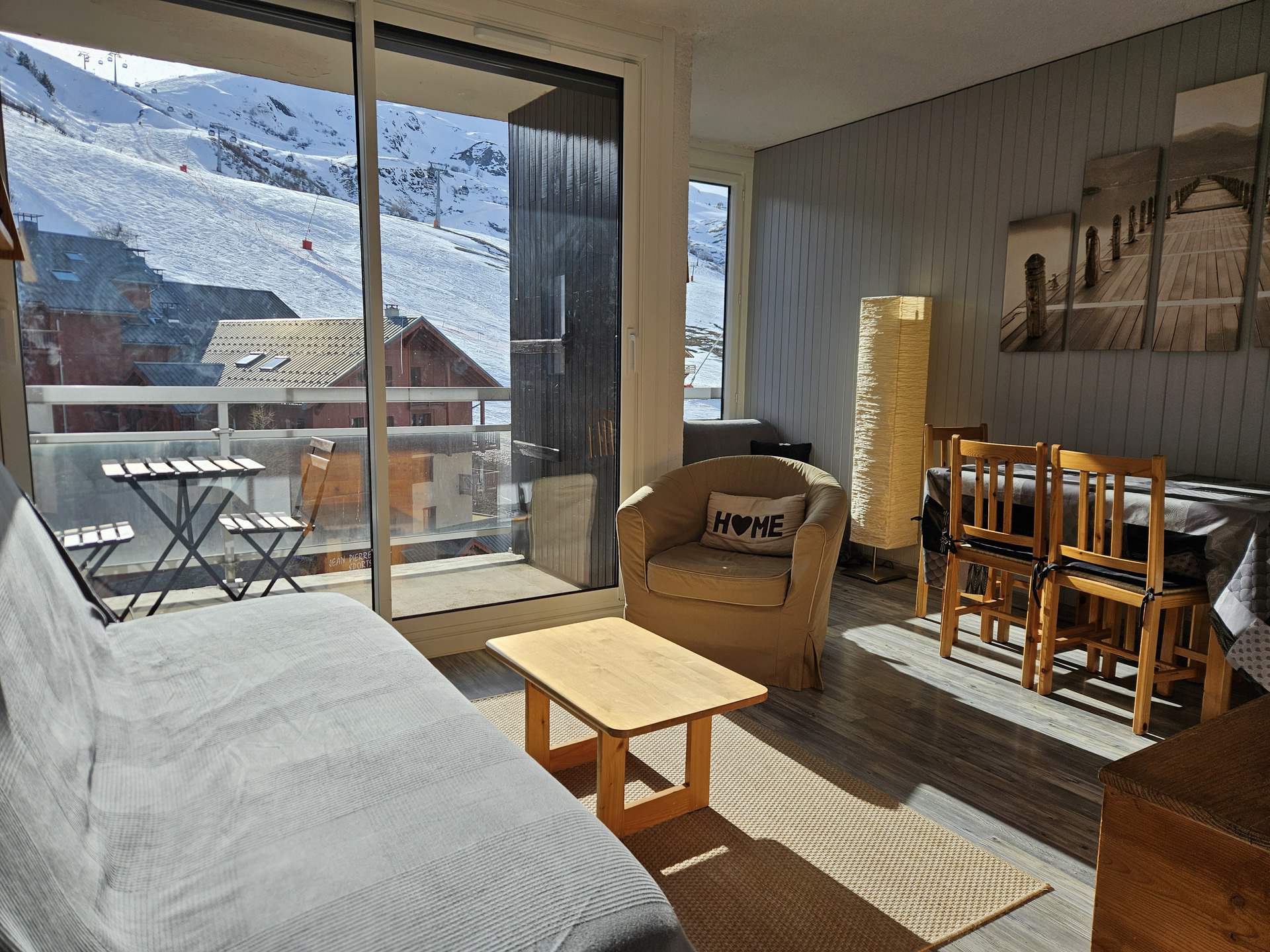 A charming 5 sleeping apartment, newly renovated and nicely decorated, with a balcony overlooking the slopes. In the Résidence Coq de Bruyère close to the ski slopes and shops (n°132 on the map station)